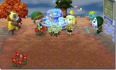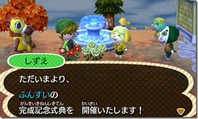 プレイヤーは村長なので、公共事業の決定権があります。いくつか選べる中から、まず最初に噴水を選びました。建築費は募金を募るので、村人も多少は援助してくれるのですが、ほとんどは自分で捻出しなければなりません。頑張ってお金を稼いでできたのが最初の写真です。