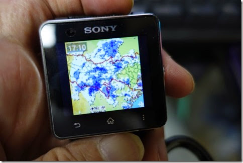 これは東京に住んでいる方ならおなじみの「東京アメッシュ」のデータをスマホで見るためのアプリ(非公式)ですが、いつの間にかSmartWatchシリーズにも対応していました。このように、SW2上で東京アメッシュの情報を確認できます。